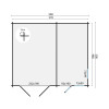 Las lamas van unidas entre sí mediante el sistema entrecruzado para conseguir una gran resistencia estructural. Las interiores son 578x480 cms y las exteriores 598x500 cms. Las tablas del tejado tienen un grosor de 18 mm y van machihembradas para conseguir una alta durabilidad.