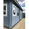 La madera en la que ha sido construido es de abeto nórdico natural. La altura máxima es de 310 cms y la mínima 222 cms. Tiene el tejado a 2 aguas. Está fabricado con lamas de madera machihembradas de 44 mm de grosor, lo que hace que sea una estructura muy robusta y bien aislada.