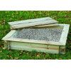 Arenero de madera de pino tratado, con tapa de medidas 100x100x24 cms.