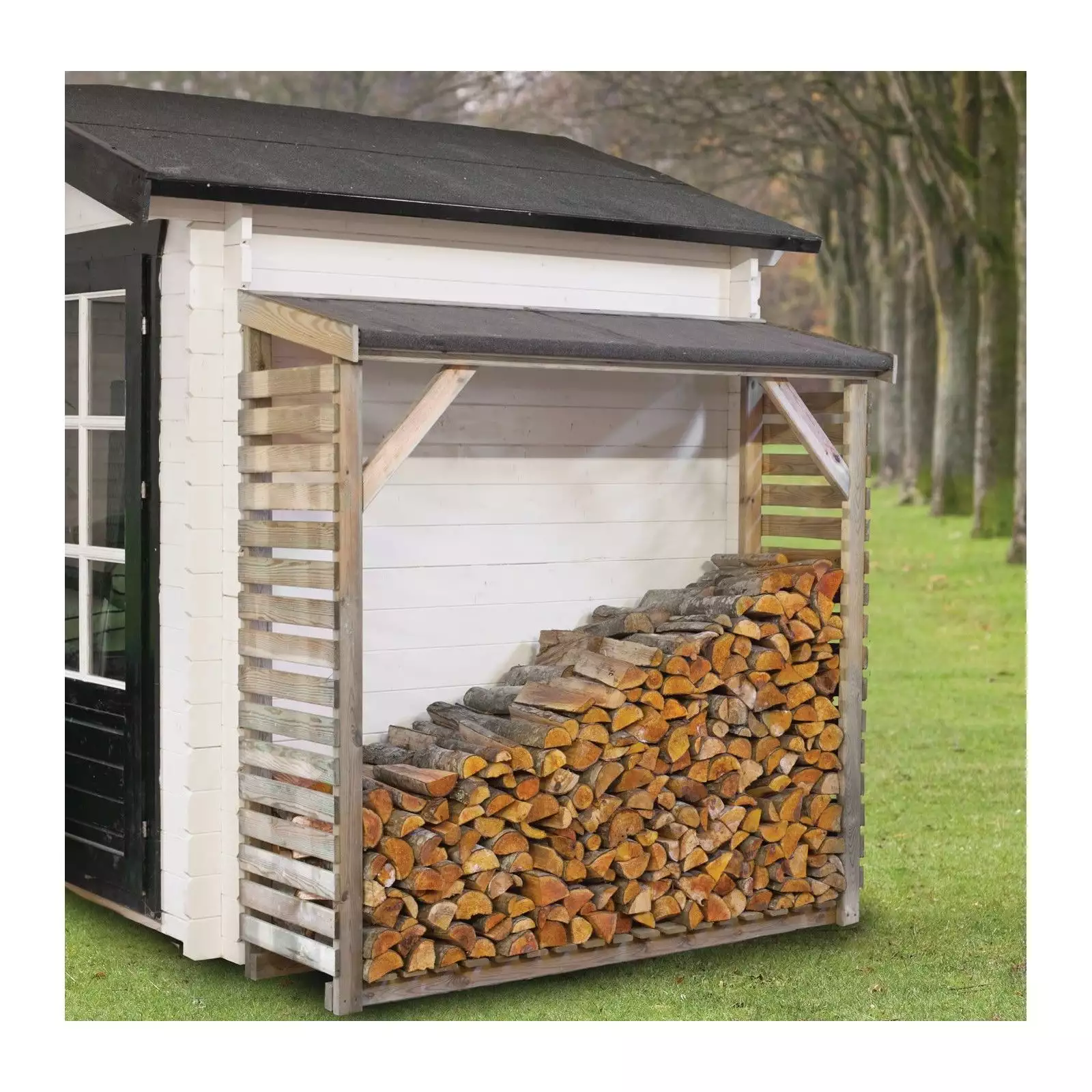 Leñeros de madera son de pino impregnado, que no requiere mantenimiento.