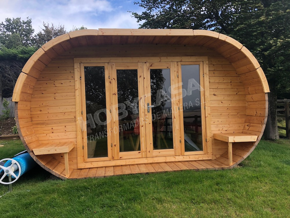 Este es uno de los usos más comunes para las casas de madera. No existe un modelo concreto para este uso, pero si que es necesario que el modelo que escojamos supere los 34 mm de grosor, puesto que, es a partir de esta medida cuando la madera de Abeto Nórdico comienza a aislar de forma natural. Esta medida es la mínima utiliza por los campings y permiten dormir sin ningún tipo de problema.