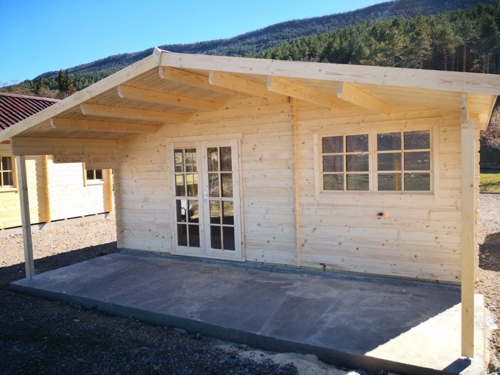 Cabaña de madera con estancias Palmar, con 24m2 de superficie + 12m2 de terraza en 45mm de grosor.
