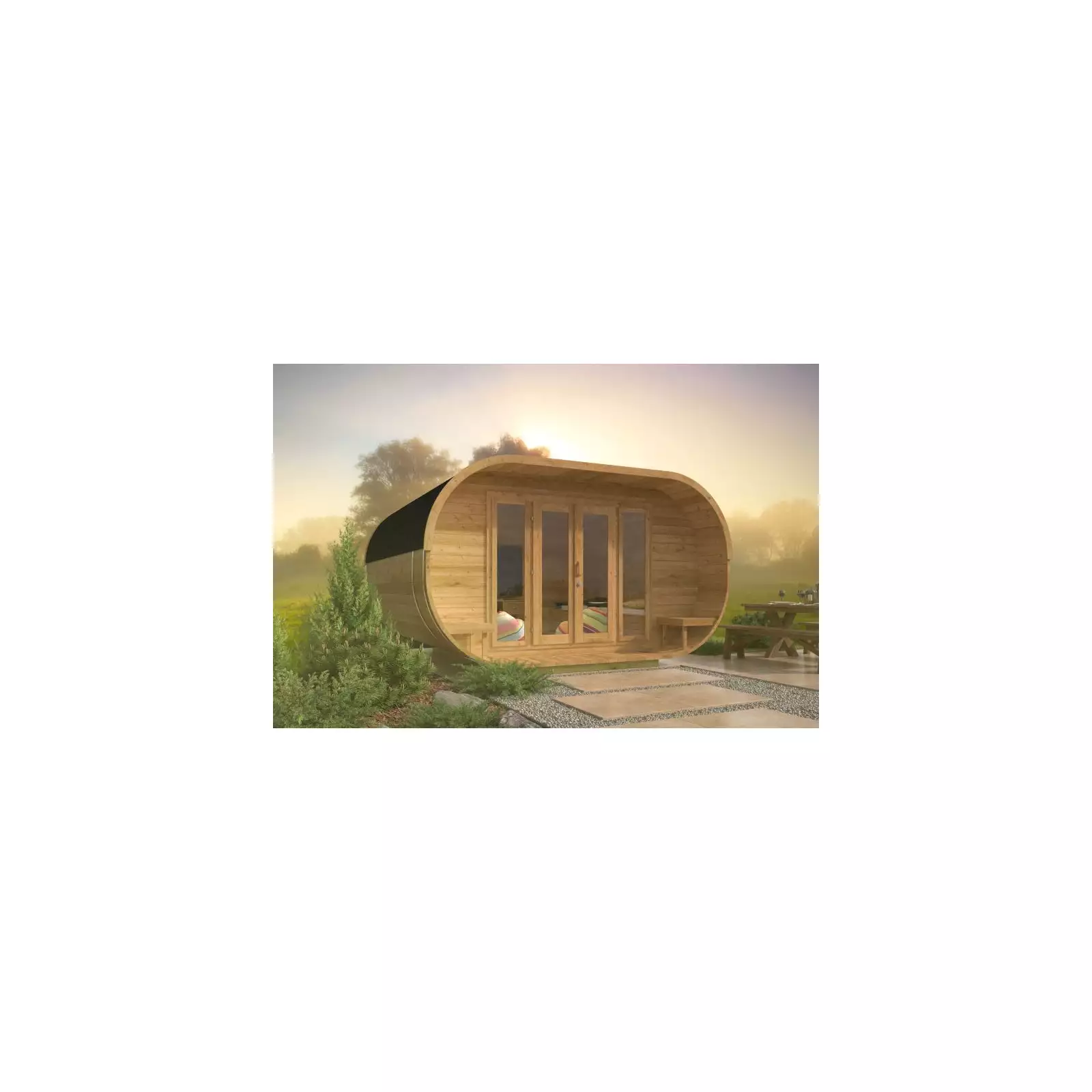 Fabricada en resistente abeto nórdico termotratado y equipada con paneles de 28 mm de grosor, esta caseta de jardín para oficina garantiza estabilidad, aislamiento térmico natural y un ambiente confortable durante todo el año. Su estética ovalada no solo aporta un toque distintivo al jardín, sino que también mejora la distribución del espacio interior.