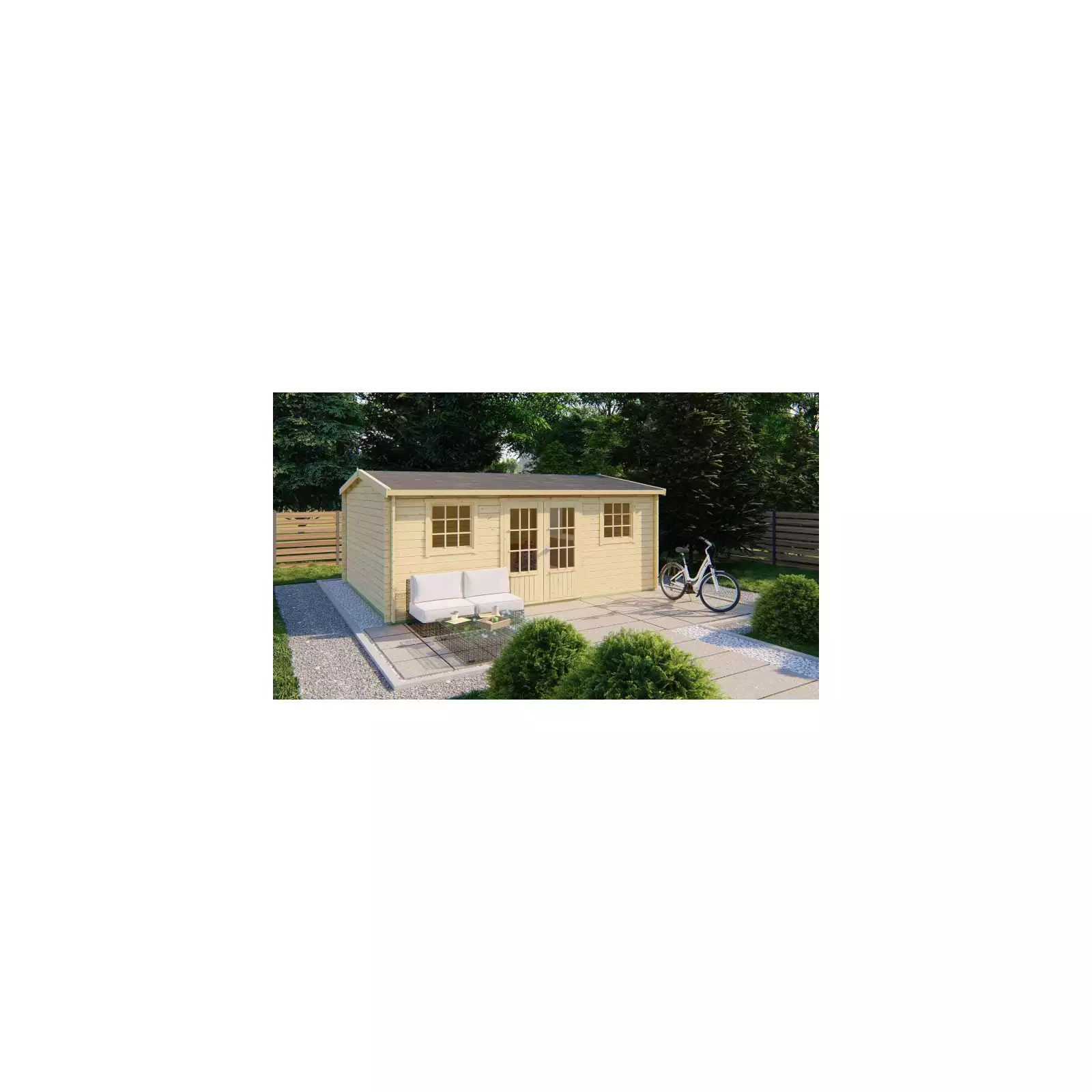 Las Casas de Madera Águilas combinan solidez estructural, diseño funcional y estética natural en un modelo diáfano perfecto para múltiples usos como taller, oficina, cabaña de campo o incluso como refugio en zonas rurales. Su tejado a dos aguas y el elegante acabado en madera natural aportan un estilo tradicional y acogedor.. Con unas dimensiones exteriores de 578x450 cm y una superficie útil de 23,2 m², este modelo tipo Dianne está fabricado en abeto nórdico de alta calidad, lo que garantiza durabilidad y una óptima resistencia a la intemperie.