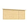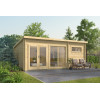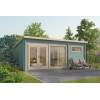 Si buscas una pieza de madera con presencia contemporánea y un interior bien planteado, la Ronda es el punto de partida adecuado. El conjunto combina un frente acristalado y una planta organizada que encaja con la vida real: un salón‑cocina que hace de corazón social, un dormitorio independiente para el descanso y un baño propio para ganar privacidad y autonomía. Todo ello con la calidez del abeto nórdico y la estética limpia de los volúmenes rectos.