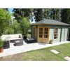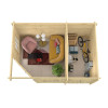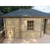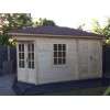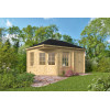 Construida en madera de abeto nórdico con ensamblaje machihembrado, esta casa incorpora una puerta doble acristalada y ventanas que proporcionan abundante luz natural. La división interior en dos espacios la diferencia de otros modelos de su tamaño, permitiendo separar zona de descanso y zona de estar o trabajo.