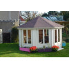 A diferencia de los cenadores abiertos, la casa Lynn incluye carpintería completa: