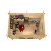 Incluye suelo de madera de 20 mm, tejado plano machihembrado y kit completo de tornillería para un montaje sencillo. Ideal para quienes buscan una caseta de madera de alta calidad con diseño moderno, seguridad reforzada y la máxima entrada de luz natural en un formato compacto y versátil.