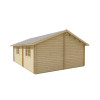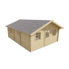 Fabricada con lamas de abeto nórdico de 44 mm tratadas por inmersión contra xilófagos, esta casa utiliza madera procedente del centro del tronco para garantizar máxima resistencia y aislamiento natural. Cuenta con 6 ventanas batientes con doble acristalamiento, puerta exterior de 86x205 cm con cristal y cerradura, 3 puertas interiores y listones de arranque para aislamiento desde la base. Se entrega con kit completo de tornillería e instrucciones de montaje.