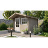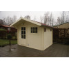 Construida en madera de abeto nórdico con sistema machihembrado, esta caseta incluye una puerta de doble hoja acristalada que maximiza la entrada de luz y facilita el acceso. El grosor de 28 mm proporciona una estructura resistente y ligera, ideal para instalaciones que no requieren aislamiento reforzado.