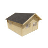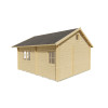Con medidas exteriores de 490x530 cm y una altura máxima de 358 cm, esta casa incorpora puerta doble con cristales de doble acristalamiento 4-6-4 y cinco ventanas adicionales que inundan el interior de luz natural. Incluye suelo de madera en ambas plantas, listones bajo pavimento tratados para aislamiento, kit de tornillería e instrucciones de montaje. El sistema Block House garantiza una resistencia estructural excepcional.