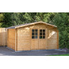 Equipada con puerta doble de 152x188 cm con cristal fijo y cerradura de seguridad, ventana lateral de 79x102 cm con doble acristalamiento 4-6-4 mm y kit completo de tornillería, esta caseta garantiza iluminación natural y un buen aislamiento térmico. El tejado a dos aguas con tarima maciza asegura durabilidad y protección frente a las inclemencias del tiempo.