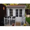 Esta casa de madera es perfecta como oficina en el jardín, estudio creativo, habitación de invitados o espacio de almacenamiento. Su estructura robusta permite colgar estanterías y personalizar el interior a su gusto. Se entrega en kit con toda la tornillería incluida para un montaje sencillo, convirtiendo la Ondara Daisy en una inversión práctica y duradera para cualquier entorno exterior.