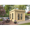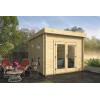 Perfecta como oficina prefabricada de jardín, estudio creativo o zona de ocio, la Portbou combina un diseño contemporáneo de líneas limpias con la calidez de la madera natural. Su sistema de montaje sencillo y las opciones de personalización en pintado, cubierta impermeabilizante y extras la convierten en una inversión versátil y duradera para cualquier hogar.