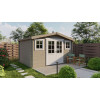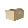 La casa de madera prefabricada Juha de 10,6 m² es una construcción compacta y funcional fabricada con lamas de abeto nórdico de 28 mm. Con unas medidas exteriores de 400x300 cm, este modelo diáfano ofrece un espacio interior versátil que se adapta a múltiples usos, desde oficina de jardín hasta taller creativo o almacén organizado.
