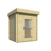 La Casa de Madera Prefabricada Burriana modelo Frankie es una solución compacta de 3 m² con paredes de abeto nórdico de 40 mm, perfecta para quienes necesitan un espacio funcional sin ocupar demasiado terreno en el jardín. Su diseño diáfano con tejado plano y ligera inclinación trasera combina estética moderna con una evacuación eficiente del agua de lluvia.