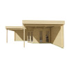 Perfecta como casa de campo, oficina exterior o alojamiento de invitados, la Jutka es una de las propuestas más versátiles del catálogo de Hobycasa. Sus porches laterales invitan a disfrutar del aire libre con estilo, mientras que el interior se adapta a cualquier uso que necesites. Una solución completa con una excelente relación calidad-precio.