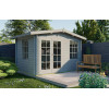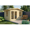 Fabricado con madera de 40 mm de grosor para ofrecer un compromiso justo en precio y capacidad calorífica. Recomendamos la aplicación de un aislamiento de techo y piso durante todo el año.