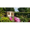 Estas casas de madera prefabricadas Castilla son ideales para el verano con lamas de 40 mm mide 350x250 cm y doble acristalamiento. Puede relajarse dentro de su cabaña durante todo el verano. Con una altura máxima de 234 cm, con un interior luminoso que se puede utilizar como sala de manualidades o un estudio de arte.
