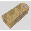 La casa de madera prefabricada Gypsy Caravan modelo Angelo ofrece un diseño único tipo vagón con 14,2 m² de superficie útil. Construida en abeto nórdico con paneles de 19 mm, esta original estructura combina estética rústica y funcionalidad en unas dimensiones compactas de 600x240 cm, perfecta para quienes buscan algo diferente en su jardín o proyecto de glamping.