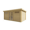 Casas de madera prefabricadas Irún de techo plano de bonito diseño, tiene una superficie de 13,4 m2. Gracias a sus 28 mm de grosor en las paredes es un modelo de casa ideal como casa de campo o de invitados o como hospedaje rural.