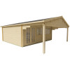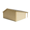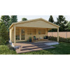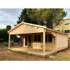 El modelo Jerez es una de las Casas de Madera Prefabricadas Jerez más completas y funcionales del catálogo Hobycasa. Diseñada para adaptarse tanto a entornos rurales como residenciales, esta vivienda ofrece un espacio interior totalmente diáfano de 26,8 m² y un gran porche frontal techado de 14 m². Este espacio exterior cubierto permite crear una acogedora terraza ideal para disfrutar del entorno, instalar un comedor al aire libre o simplemente relajarse a la sombra. Su construcción en madera de abeto nórdico garantiza una durabilidad superior. Esta madera ha sido tratada por inmersión contra xilófagos como termitas y carcoma, asegurando la longevidad del producto. Las lamas machihembradas de 44 mm de grosor aportan aislamiento natural y una excelente resistencia estructural gracias a su sistema de ensamblado por entrecruzado. Esta robustez convierte al modelo Jerez en una de las casas de madera prefabricadas más demandadas. La vivienda incorpora un tejado a dos aguas y tablas machihembradas, lo que mejora la estanqueidad y durabilidad del conjunto. Además, la puerta doble con ventanas fijas de doble cristal y las dos ventanas frontales permiten una entrada de luz excepcional y una ventilación eficaz. Esto mejora notablemente la habitabilidad del interior, haciéndola ideal tanto para uso habitual como esporádico.