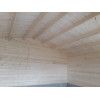 Fabricada en madera de abeto nórdico con sistema machihembrado de alta precisión, esta casa incorpora doble acristalamiento en sus ventanas y puertas, aportando luminosidad y aislamiento. El porche cubierto amplía las posibilidades de uso, funcionando como zona de estar, comedor al aire libre o espacio de trabajo protegido.