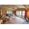 Construida con madera de abeto nórdico de 58 mm tratada contra xilófagos, la estructura destaca por su excepcional aislamiento térmico y su robustez estructural. Sus dimensiones exteriores de 540x440 cm albergan amplios ventanales con doble acristalamiento 4-6-4, puerta doble de 159x188 cm con cerradura y ventana lateral batiente de 213x96 cm que inundan el interior de luz natural.