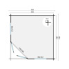 Con medidas exteriores de 302x302 cm y una altura máxima de 250 cm, el interior diáfano permite múltiples configuraciones. La puerta doble acristalada de 142x184 cm con cerradura y las dos ventanas batientes de 86x121 cm con doble acristalamiento de 3-6-3 mm garantizan luminosidad, ventilación y confort térmico tanto en invierno como en verano.