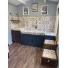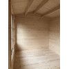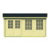 La cabaña de madera tiene un diseño de ápice transversal con puertas dobles y dos ventanas que se abren a un lado. Con doble acristalamiento y troncos sustanciales de 40mm.