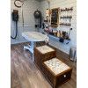 Está fabricada con lamas de madera machihembradas de 40 mm de grosor, lo que hace que pueda soportar colgar estanterías en paredes. Las lamas van unidas entre sí mediante el sistema entrecruzado para conseguir una gran resistencia estructural.