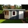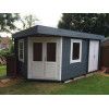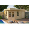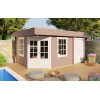 Fabricada con madera de abeto nórdico de 44 mm de grosor, esta casa garantiza una excelente estabilidad estructural y aislamiento térmico. El techo plano con acabado EPDM asegura una impermeabilización duradera, mientras que las ventanas de doble cristal y la puerta acristalada inundan el interior de luz natural.