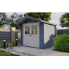 La Casa de Madera Segovia modelo Gitte ofrece 5,6 m² de espacio diáfano con lamas machihembradas de 28 mm en abeto nórdico y un diseño cuadrado de 260x260 cm con alero frontal de 70 cm. Su planta compacta la convierte en una solución práctica para jardines de cualquier tamaño, proporcionando un espacio funcional sin ocupar demasiado terreno.