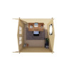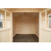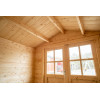 Equipada con puerta doble de apertura exterior con cerradura y cristales de 4 mm, esta caseta de madera garantiza buena iluminación y seguridad. El tejado a dos aguas con tablas machihembradas y una altura máxima de 236 cm crean un interior cómodo, mientras que el sistema entrecruzado de ensamblaje asegura una estructura sólida y duradera.