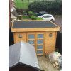 Casas de madera Vendrell con techo plano. Esta casita de madera tiene una superficie de 7,7 m2. Es un diseño muy moderno para poner en el jardín. Además al tener puerta doble es muy cómoda para meter herramientas, corta césped...
