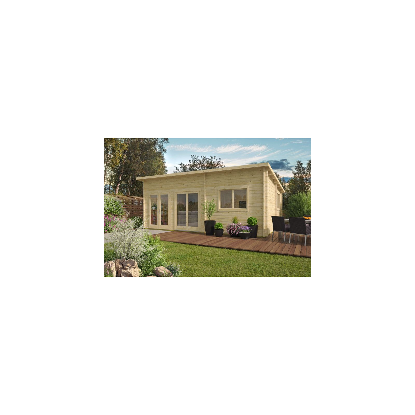 Fabricada con madera maciza de abeto nórdico de 44 mm, esta vivienda garantiza durabilidad, aislamiento y un interior cálido y acogedor. En el catálogo de Hobycasa, este modelo destaca entre las casas de madera de Hobycasa por su estética contemporánea y su cubierta plana, perfecta para climas suaves o para integrarla en entornos modernos.