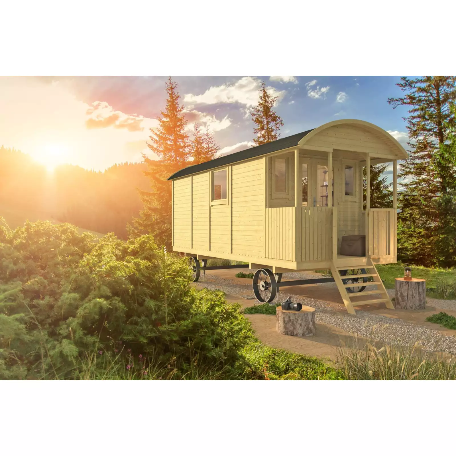 Las Casas de Madera Badajoz son una opción original y encantadora dentro del catálogo de hobycasa casas de madera. Este modelo "Gypsy Caravan" Kathy está diseñado para ofrecer un espacio único y funcional de 12 m², ideal como casita de jardín, oficina, alojamiento alternativo o incluso como caravana casita de estilo vintage.