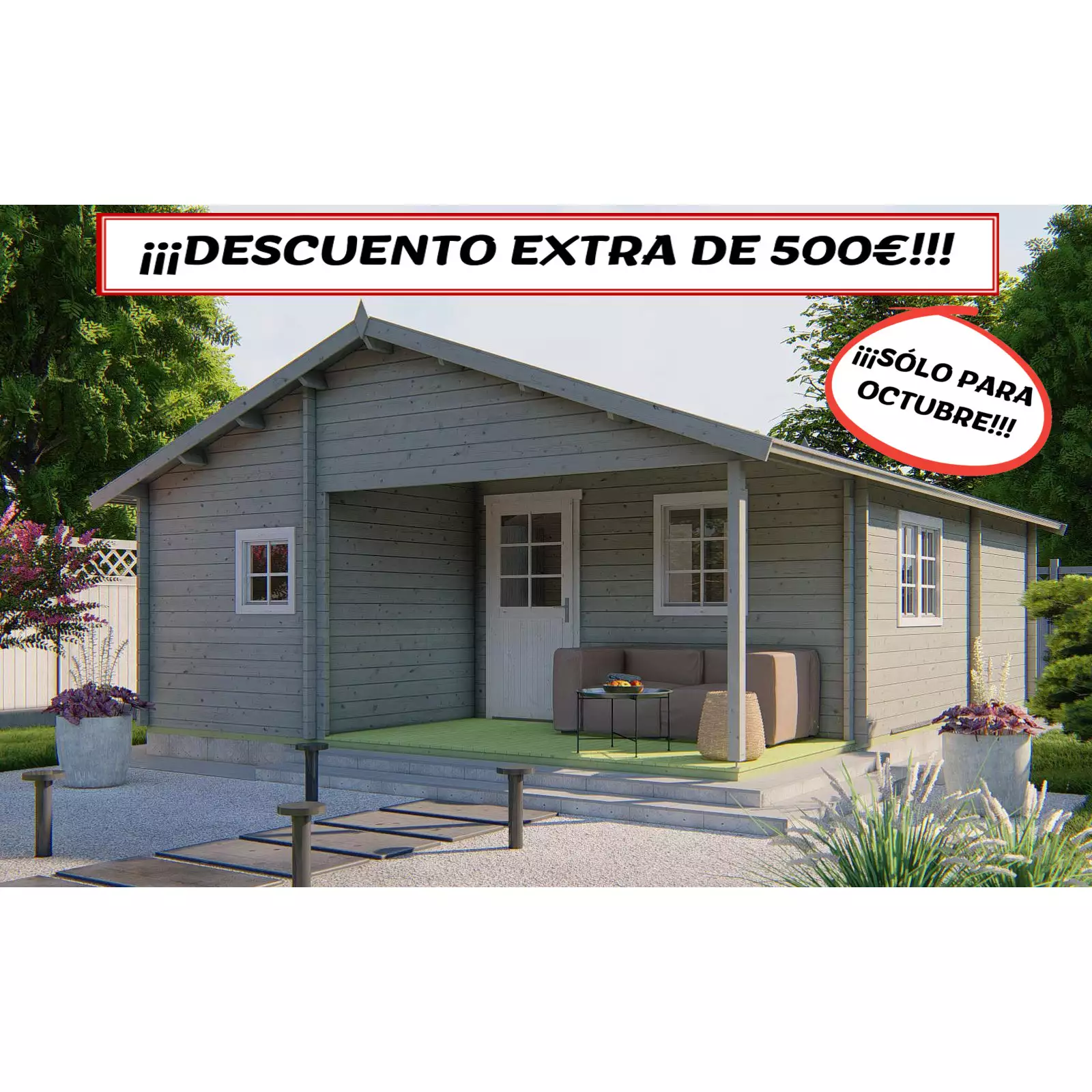 Fabricada con madera maciza de 44 mm de grosor, garantiza una excelente resistencia térmica y una estructura robusta. Las medidas exteriores son 595x808 cm, proporcionando una superficie generosa para vivir o disfrutar de una segunda residencia en plena naturaleza.