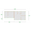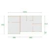 Con unas dimensiones exteriores de 1267x512 cm, altura máxima de 290 cm y ventanas con doble acristalamiento 3-6-3 mm, esta casa modular ofrece luminosidad, confort y aislamiento natural. Incluye 2 puertas dobles de acceso, múltiples ventanas y rastreles bajo paredes para protección contra la humedad. La madera está tratada desde la tala contra termitas y carcoma.