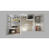 La casa de madera prefabricada modular de 55 m² combina dos módulos independientes que permiten configurar hasta 3 dormitorios, 2 baños y salón-cocina. Fabricada en abeto nórdico con lamas de 44 y 40 mm, esta vivienda destaca por su versatilidad: puedes adaptar la distribución interior eliminando tabiques o conectando estancias según tus necesidades.