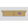 Las medidas de la solera de esta casa prefabricada son de 580x1160 cms y las exteriores de 600x1200+75 cms de alero frontal por lado. Las tablas del tejado van machihembradas para conseguir una alta durabilidad.