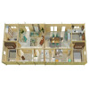 Distribución: Las casas prefabricadas Baleares tienen 8 estancias para 6 habitaciones (2 de 8, 2 de 7 y 2 de 6 m2 respectivamente), amplio salón-cocina de 42 m2 y 2 baños de 3,7 m2. Es la unión entre dos modelos LAS PALMAS, lo cual le permite flexibilidad a la hora de organizar la distribución, pudiendo recortar algún tabique (dejando un arco de unos 10cm alrededor) para ampliar habitaciones (siempre consultándonos previamente).