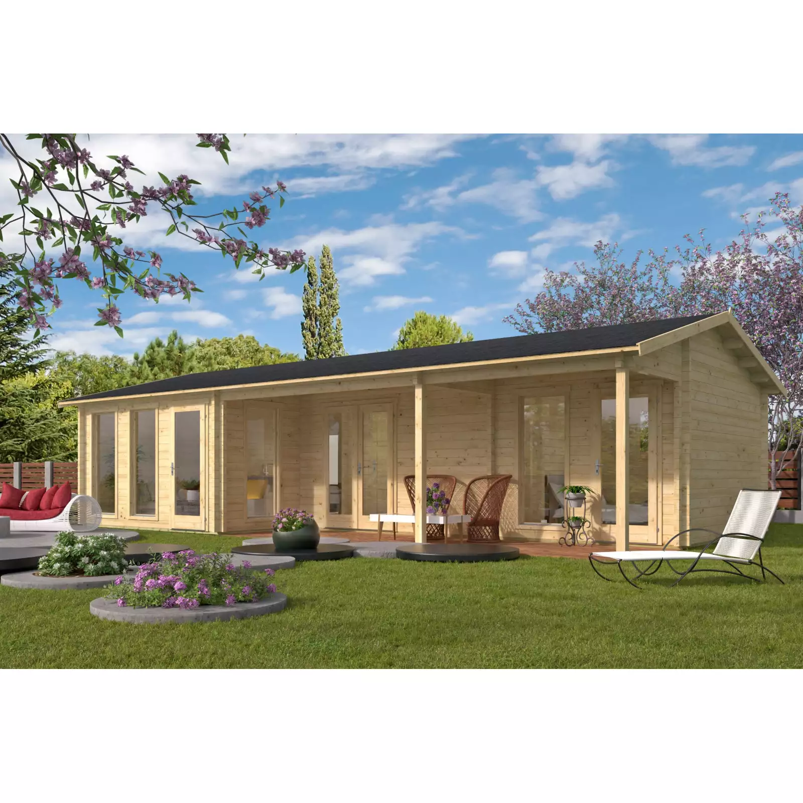 Adecuado para cualquier número de usos, desde espacio de oficina hasta alojamiento adicional, un gimnasio o para el entretenimiento, ¡una casa de madera bonita y muy útil!