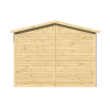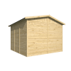 El tejado a dos aguas, ejecutado con lamas de 16 mm, gestiona bien la lluvia y minimiza acumulaciones. La caseta está preparada para rematar con impermeabilización según tu clima y tus planes de acabado: una opción económica para prolongar la vida útil y reducir mantenimiento a futuro.