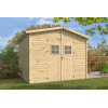 Cuando el jardín se llena, una caseta bien resuelta cambia la rutina. La Mijas apuesta por un sistema de paneles preensamblados de 16 mm que acelera la instalación y deja la estructura lista para el uso semanal. En su planta 300×300 cm, los 9 m² se aprovechan de verdad: estantes perimetrales para clasificar, un tramo libre para maniobrar con cajas o bicicletas, y luz natural suficiente para trabajar sin encender nada en pleno día.