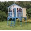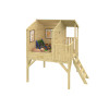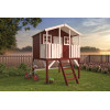 Construida con paneles de 16 mm de espesor, la Peter Pan incorpora dos ventanas de metacrilato que aportan luz natural y seguridad, evitando los riesgos del cristal convencional. La terraza delantera elevada amplía la zona de juego y permite a los niños disfrutar de su propio espacio al aire libre. La estructura sobre pilares garantiza estabilidad y resistencia al uso diario.