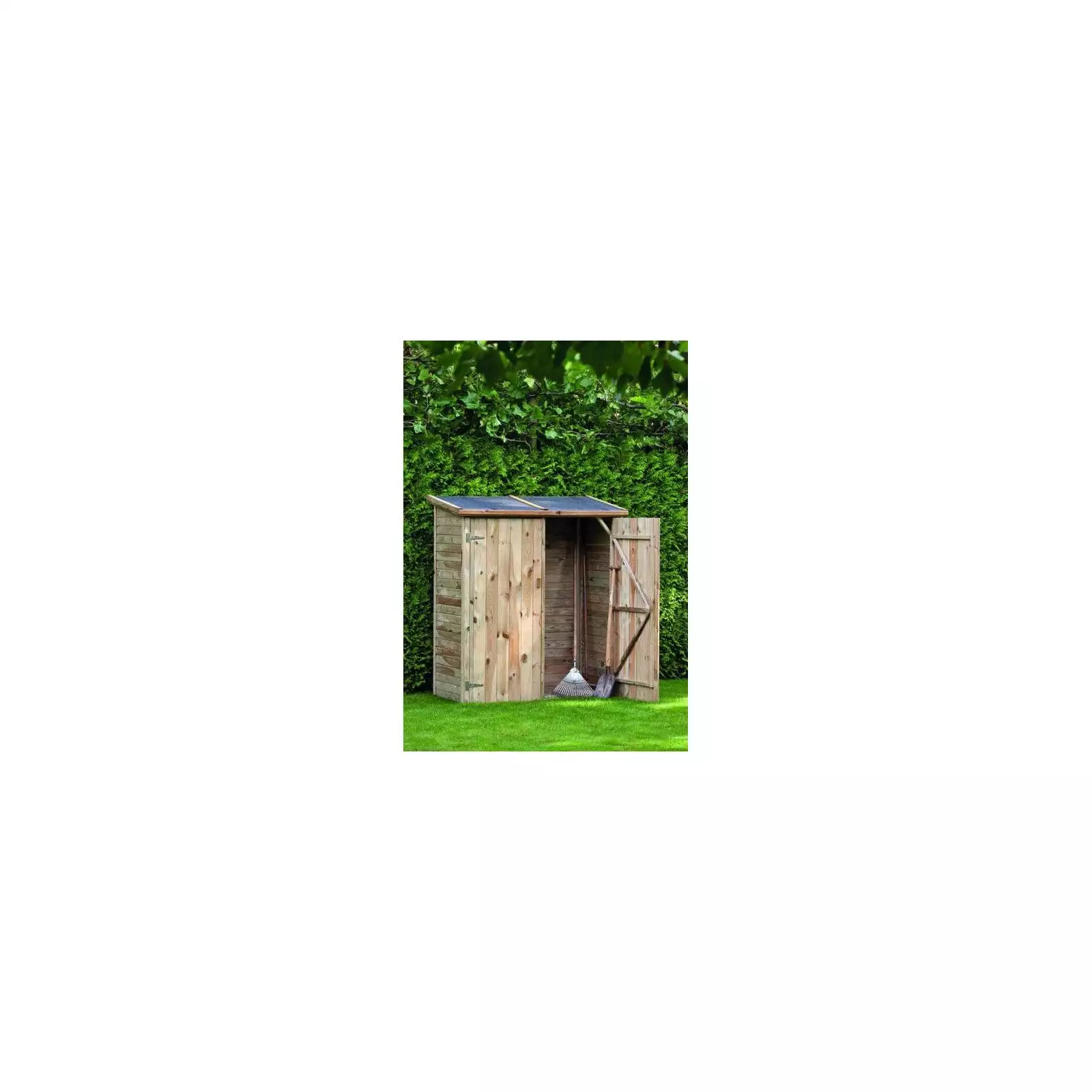 El tejado a un agua evacúa la lluvia con eficacia y llega impermeabilizado con tela asfáltica. Además, el suelo de madera viene incluido para aislar el contenido de la humedad del terreno. El sistema de paneles preensamblados, con kit de tornillería e instrucciones, agiliza el ensamblaje sobre base nivelada. La puerta doble facilita el acceso a objetos voluminosos.