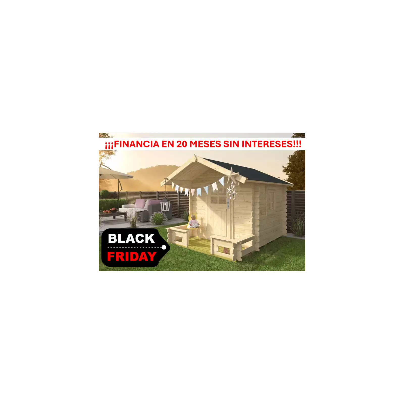 La caseta de jardín para niños modelo Finland es una encantadora construcción de madera que se convierte en el espacio ideal para que los más pequeños jueguen, se expresen y vivan sus propias aventuras al aire libre. Fabricada en resistente madera de abeto nórdico natural, ofrece una combinación perfecta entre estética, seguridad y durabilidad.