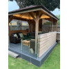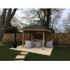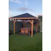 Gracias a su planta cuadrada y sus casi 12 m2 de superficie cubierta, el cenador Kos de abeto Douglas es perfecto para múltiples usos: