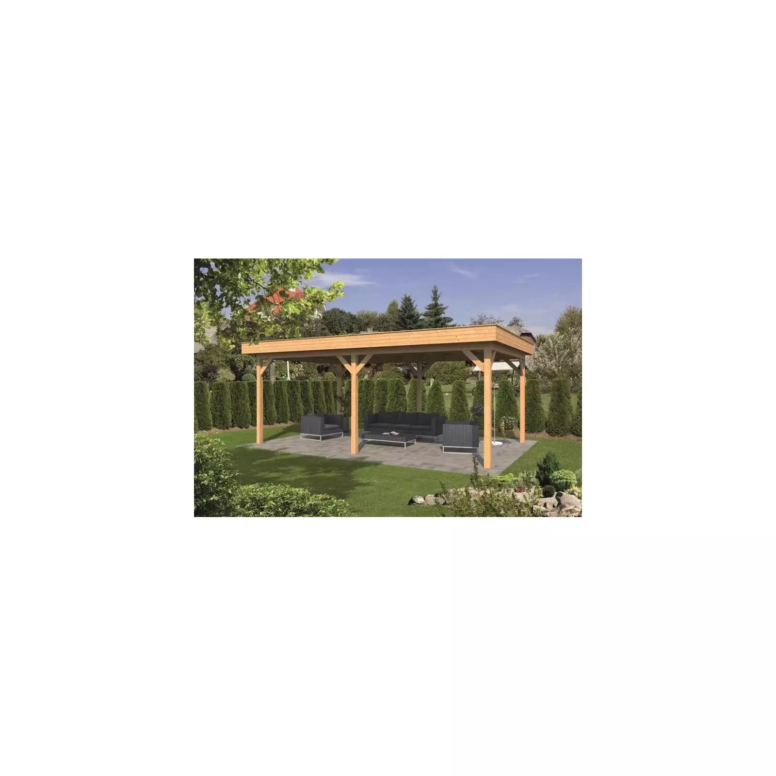 Cenadores de madera OSLO. Este cenador rectangular de abeto douglas macizo, es perfecto tanto para zona de comedor exterior como para carpot o garaje de madera para proteger los coches.